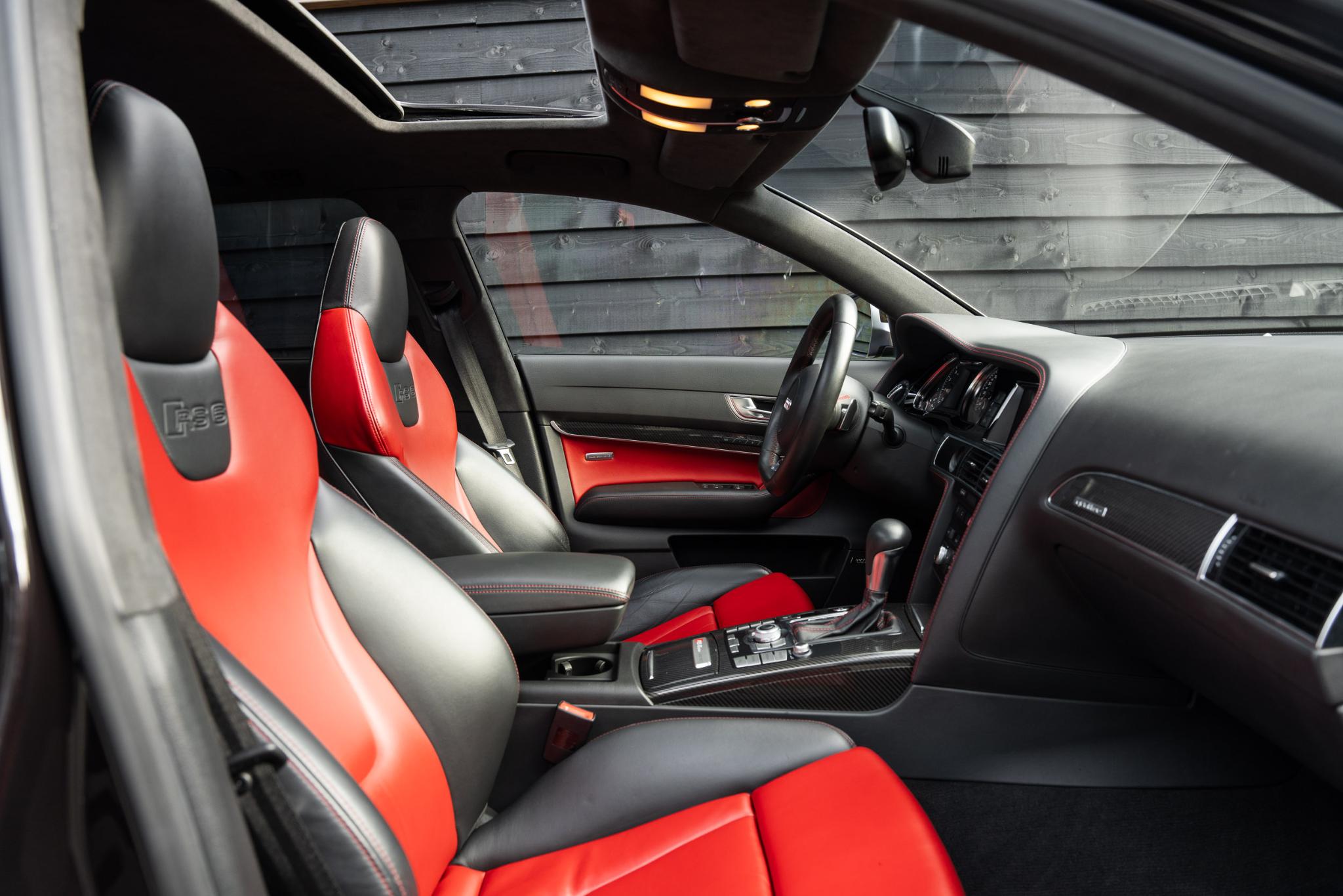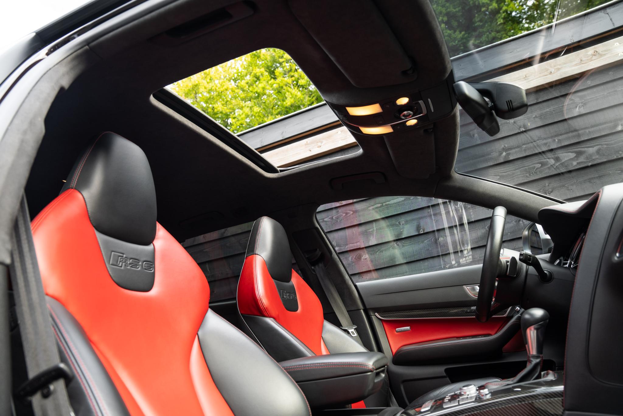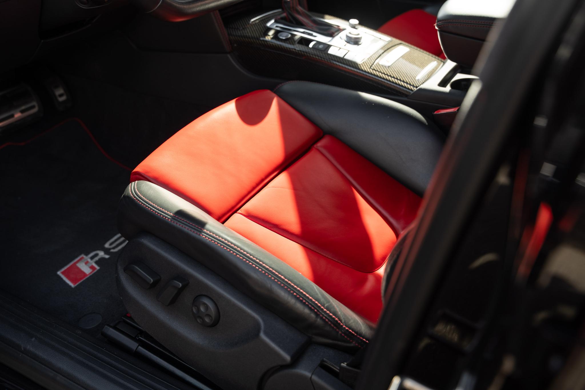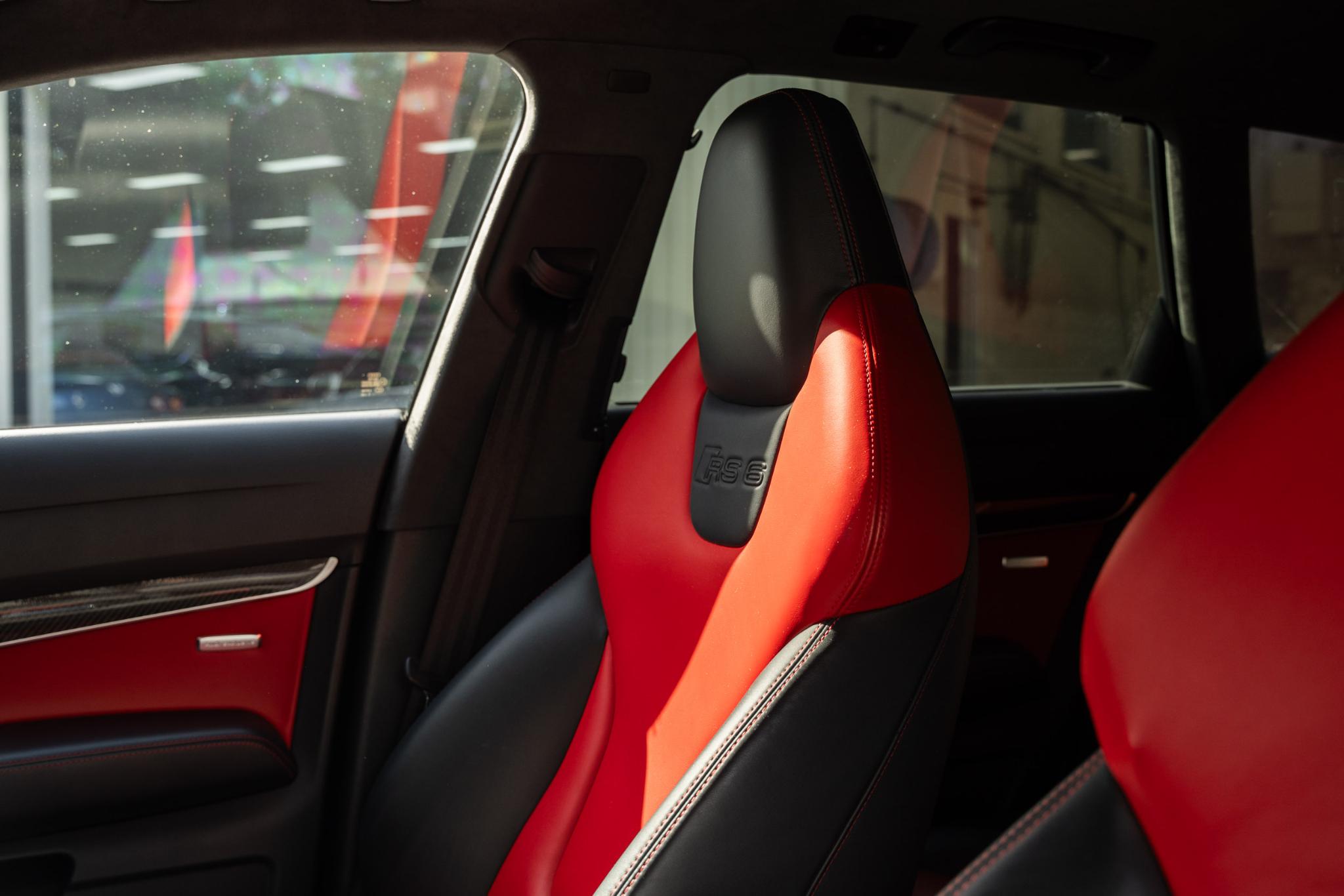 Wat deze RS6 Plus extra bijzonder maakt, is de configuratie. Hij is gespoten in het zeldzame Dark Cherry Pearl Effect, een kleur die lijkt te leven. In de zon gloeit hij warm bordeauxrood, terwijl hij in de schaduw een dieppaarse gloed krijgt. Het is een tint die zowel elegantie als kracht uitstraalt, precies wat deze auto belichaamt. Binnenin zet die lijn zich moeiteloos voort: een interieur in zwart leer met bordeauxrode accenten en rood stiksel. Stoer, verfijnd en met een vleugje drama, precies zoals een echte RS hoort te zijn.