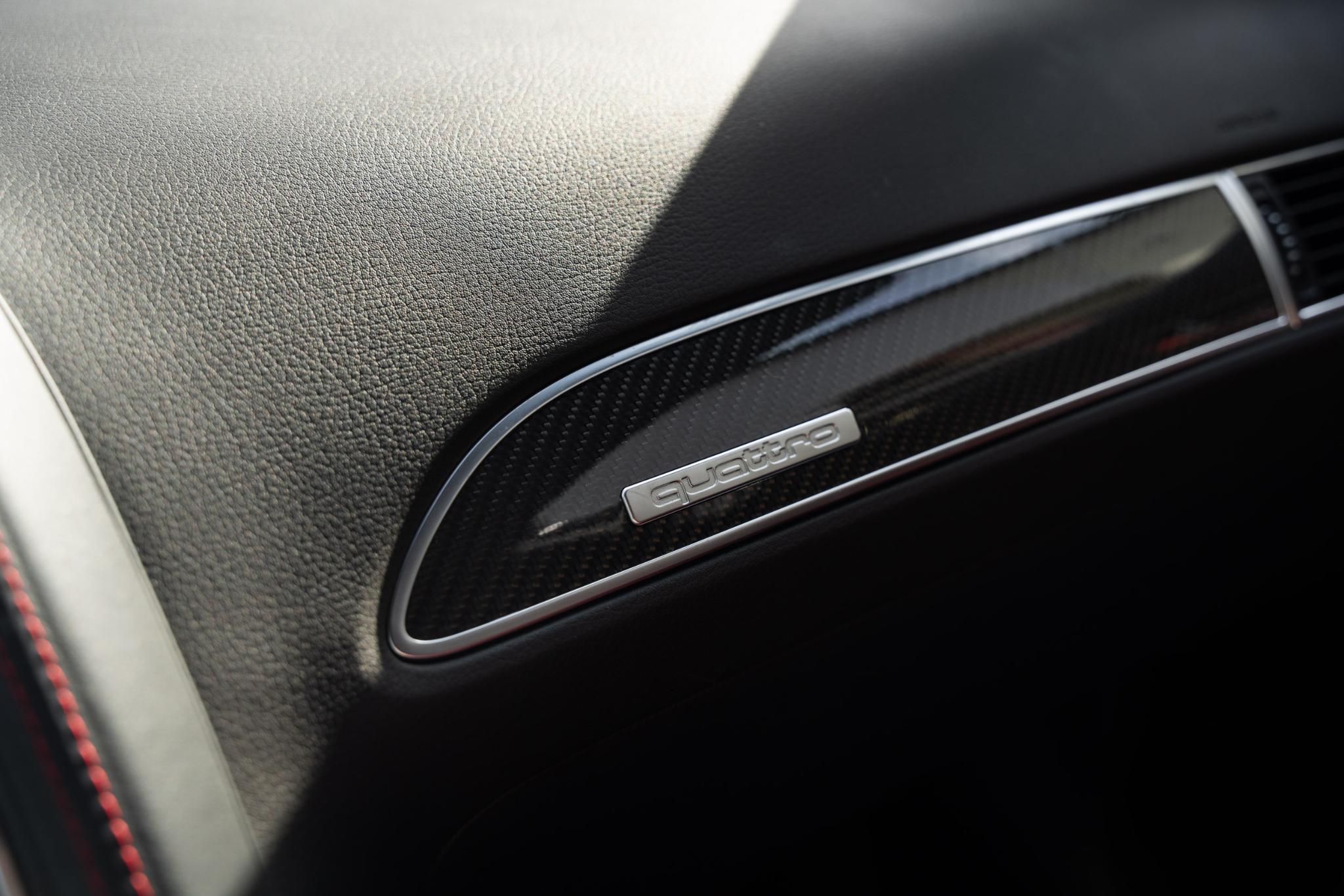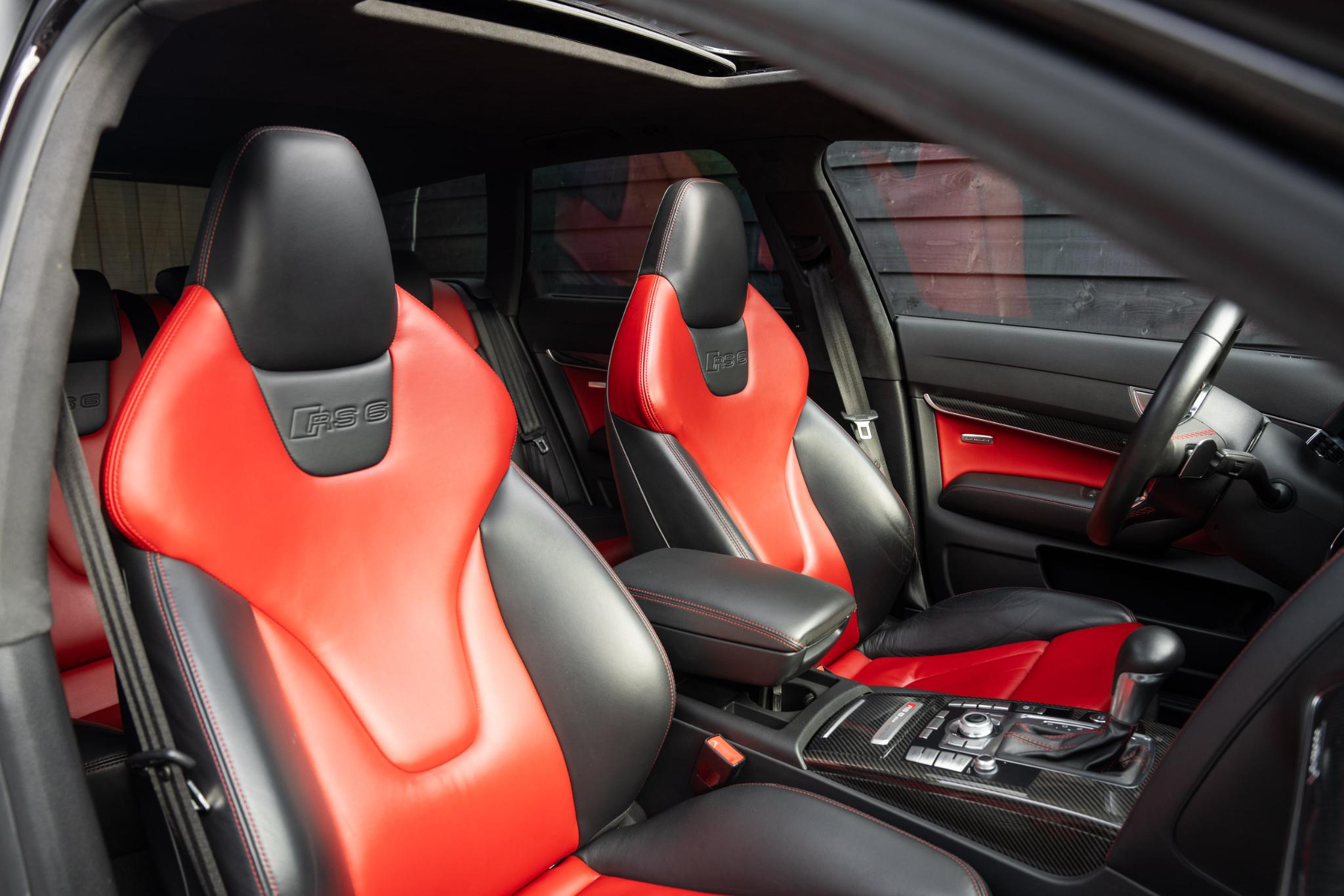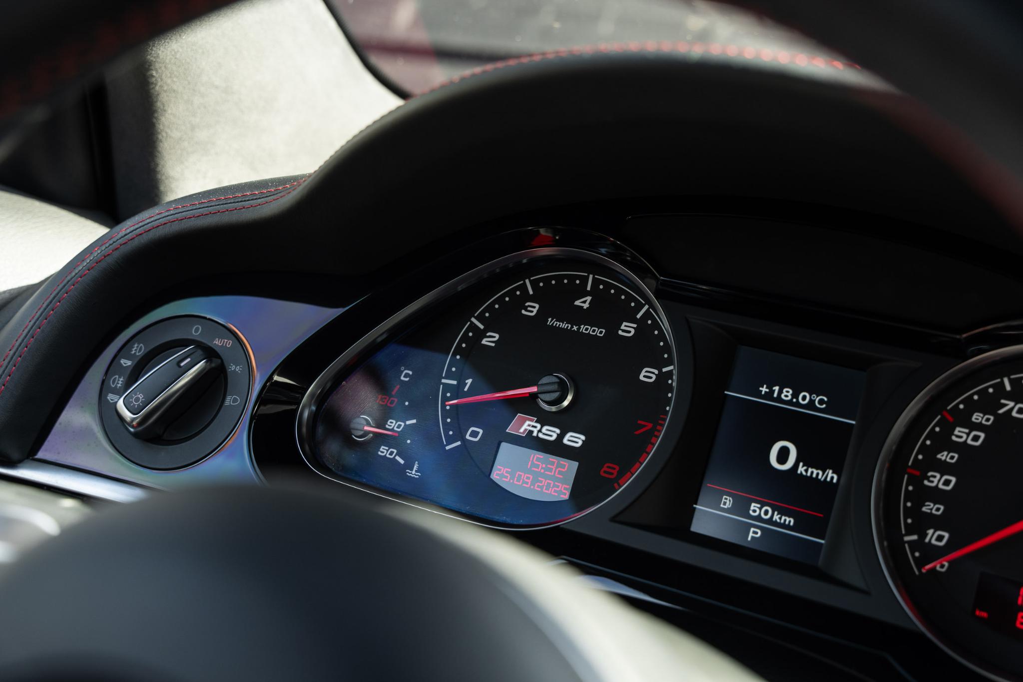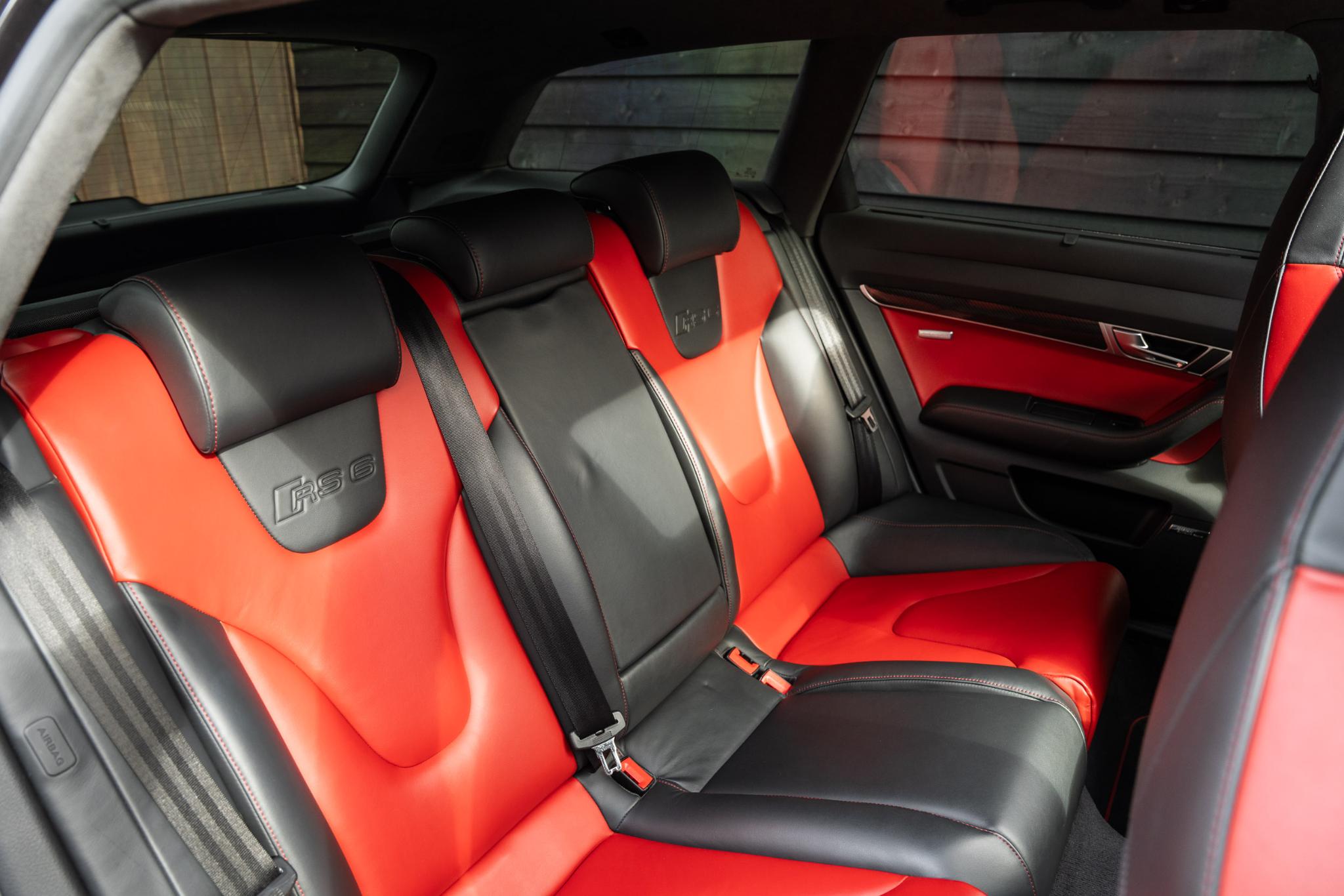 Wat deze RS6 Plus extra bijzonder maakt, is de configuratie. Hij is gespoten in het zeldzame Dark Cherry Pearl Effect, een kleur die lijkt te leven. In de zon gloeit hij warm bordeauxrood, terwijl hij in de schaduw een dieppaarse gloed krijgt. Het is een tint die zowel elegantie als kracht uitstraalt, precies wat deze auto belichaamt. Binnenin zet die lijn zich moeiteloos voort: een interieur in zwart leer met bordeauxrode accenten en rood stiksel. Stoer, verfijnd en met een vleugje drama, precies zoals een echte RS hoort te zijn.