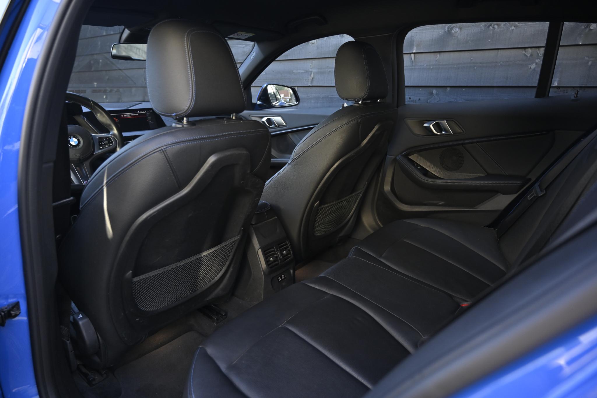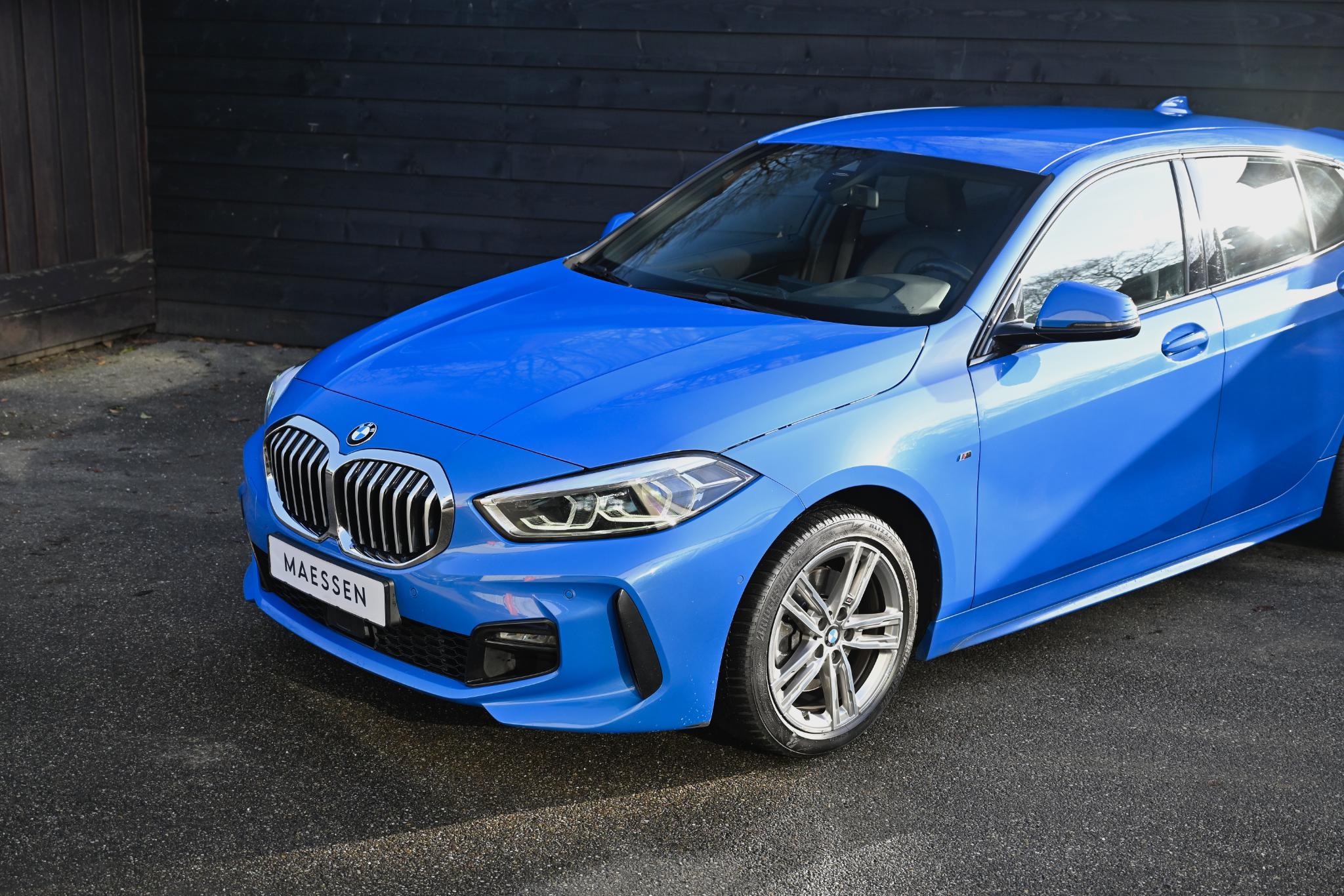 De auto is uitgevoerd in Misano Blau Metallic, gecombineerd met een sportief en luxe M Sport lederen Dakota-interieur in zwart met blauwe accenten. Een dynamische en moderne kleurcombinatie die perfect past bij het M Sport-karakter van deze 1 Serie.