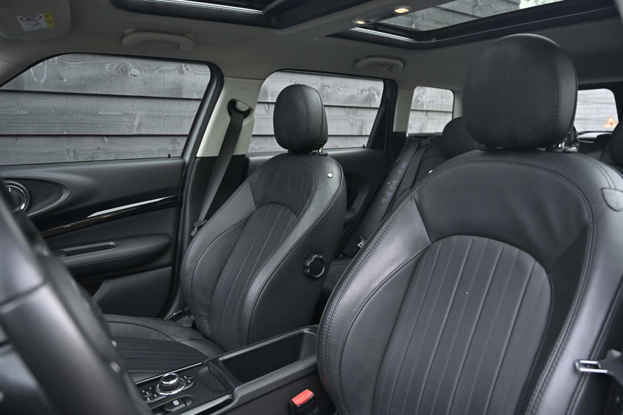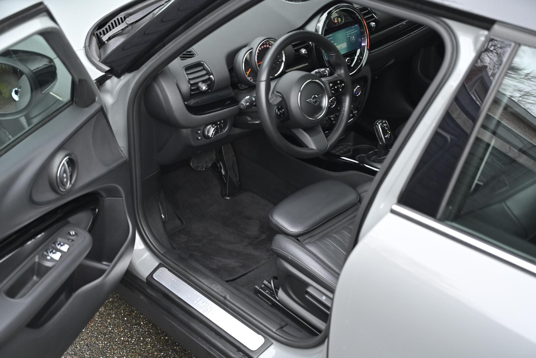 De auto is uitgevoerd in het stijlvolle Moonwalk Grey Metallic, gecombineerd met een luxe MINI Yours Leather Lounge interieur in Carbon Black. Het lederen interieur in combinatie met de sportstoelen geeft deze Clubman een hoogwaardige en sportieve uitstraling, perfect passend bij het Business Edition-uitrustingsniveau.