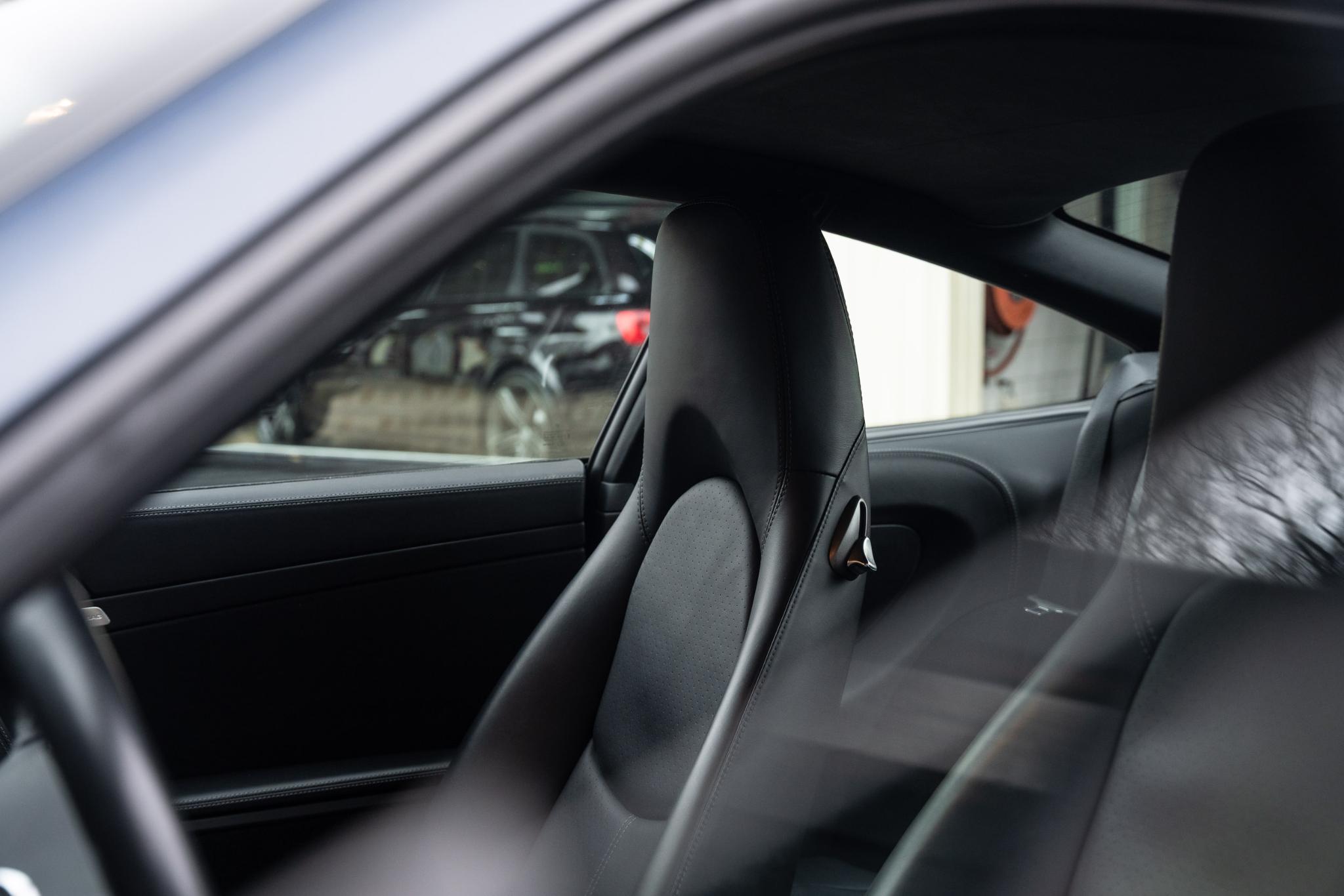 De specificatie van deze 997.2 is precies goed getroffen. Dunkelblauw Metallic is een van die tinten die in de schaduw ingetogen oogt, maar in de zon diepe metallic lagen laat zien die de lijnen van de 997 prachtig benadrukken. Het interieur is uitgevoerd in volledig zwart leder en uitgerust met stoelverwarming, BOSE-audio, het mooiere sportstuur, een elektrisch schuif-kanteldak, PASM en parkeersensoren. In het kort: een fijne mix van comfort, luxe en betrokkenheid achter het stuur. Geen overdaad, geen poespas, gewoon een doordachte configuratie die klopt.