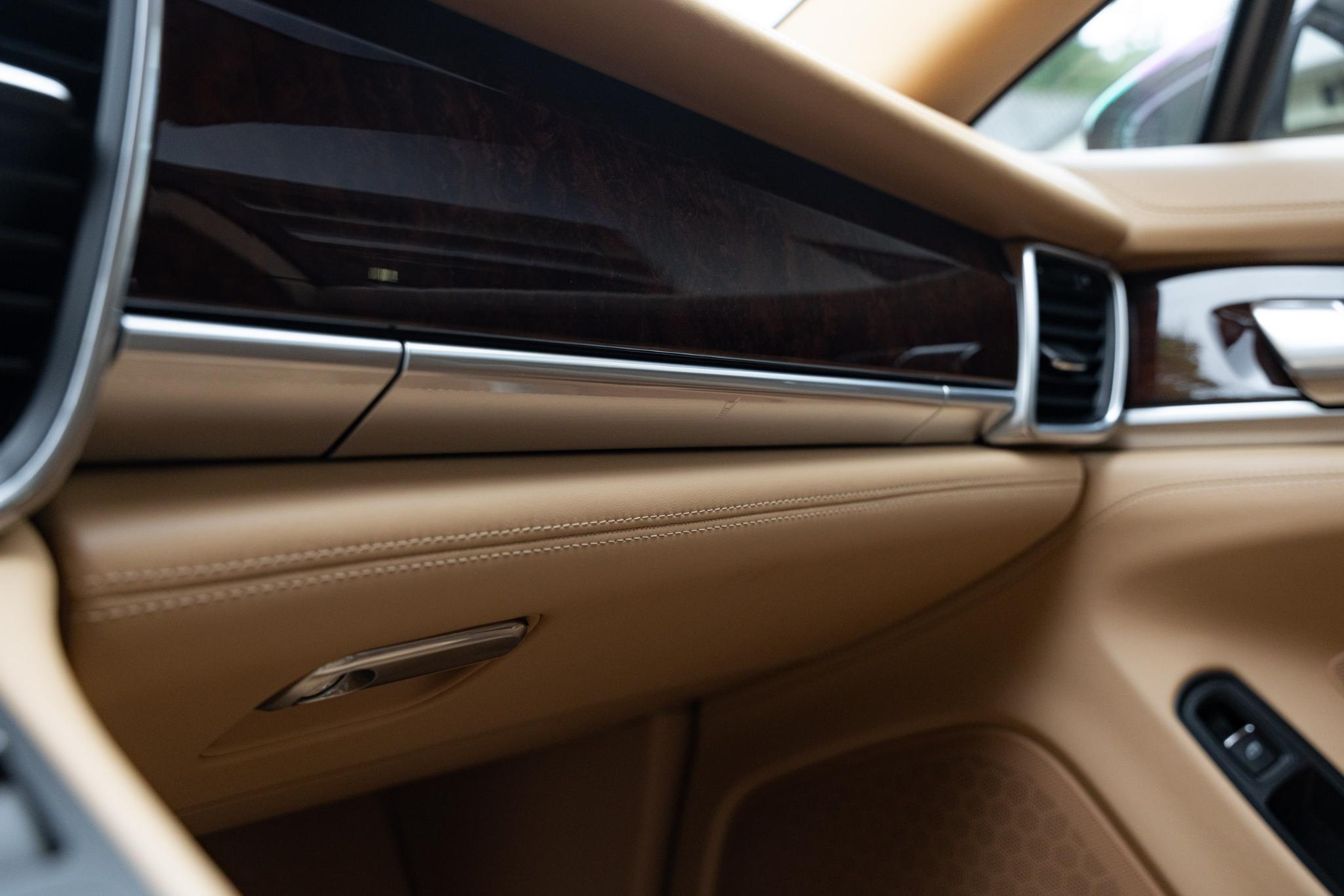 Wat deze Panamera 4S extra bijzonder maakt, is zijn smaakvolle configuratie. De buitenzijde is uitgevoerd in Carbon Grey Metallic, een kleur die de elegante lijnen van de auto prachtig accentueert. Binnenin bevindt zich een Luxor Beige Raff lederen interieur, gecombineerd met het interieur houtpakket. Deze combinatie zorgt voor een stijlvolle en warme ambiance aan boord, die zowel luxe als rust uitstraalt, maar het interieur ook bijzonder ruimtelijk aan doet voelen. Het raffleder voelt niet alleen zacht aan, maar veroudert ook op een bijzonder mooie manier. In deze uitvoering voelt de Panamera als een echte luxewagen.