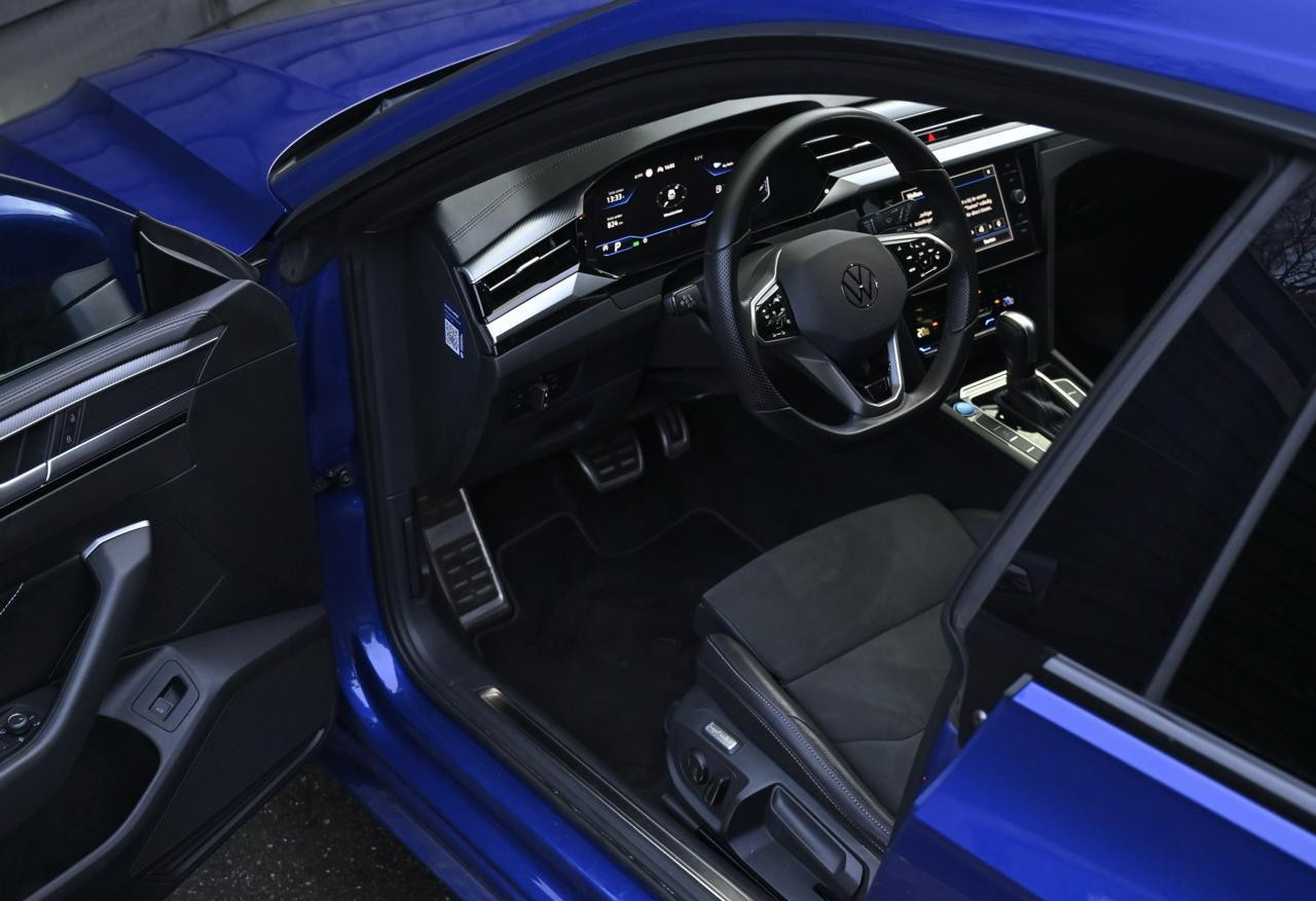 Deze Volkswagen Arteon R-Line combineert een uitgesproken design met comfort, technologie en verfijning. Uitgevoerd in de opvallende kleur Lapiz Blue met een zwart interieur, onderscheidt dit exemplaar zich door zijn sportieve R-Line uitstraling en hoogwaardige afwerking. De coupé-achtige daklijn, lange wielbasis en strakke belijning geven de Arteon een zeer representatief karakter.