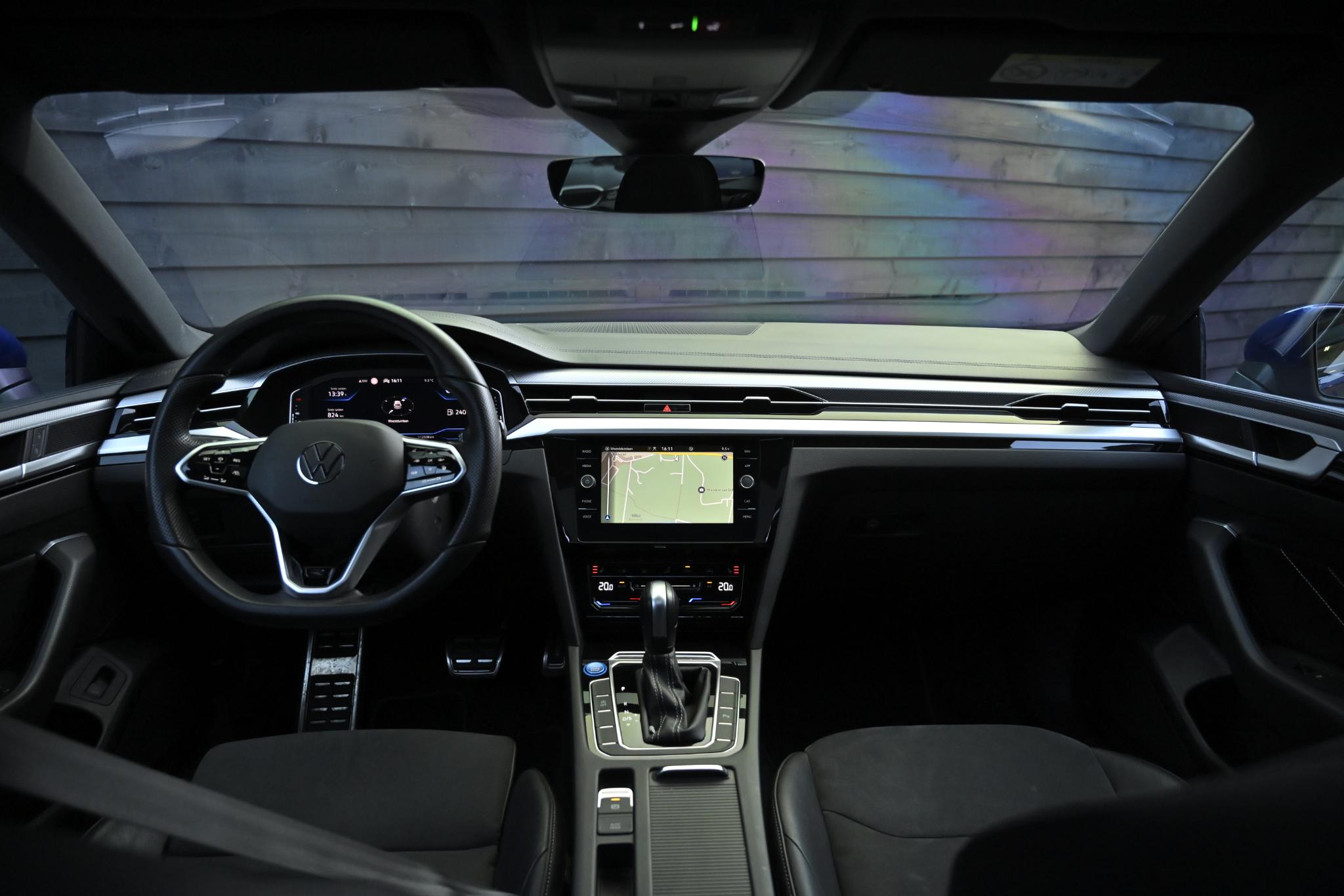 Het resultaat is een Arteon R-Line met een strakke, sportieve uitstraling, waarbij chroomaccenten zijn vervangen door zwart uitgevoerde details voor een moderne en dynamische look. In combinatie met het Lapiz Blue lakwerk en de Rosario-velgen ontstaat een zeer smaakvolle en onderscheidende configuratie.